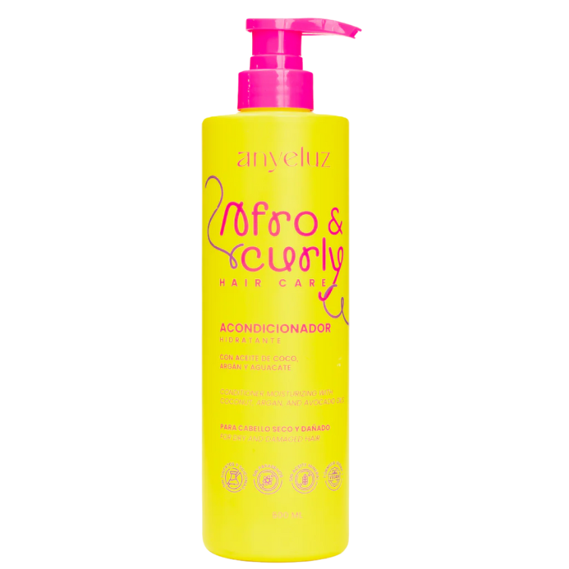 El Acondicionador Hidratante Afro & Curly Anyeluz está formulado especialmente para cabellos rizados, crespos y afro. Su mezcla de ingredientes nutritivos y emolientes ayuda a hidratar profundamente, desenredar con facilidad y definir rizos sin frizz, dejando el cabello suave, manejable y con movimiento natural.