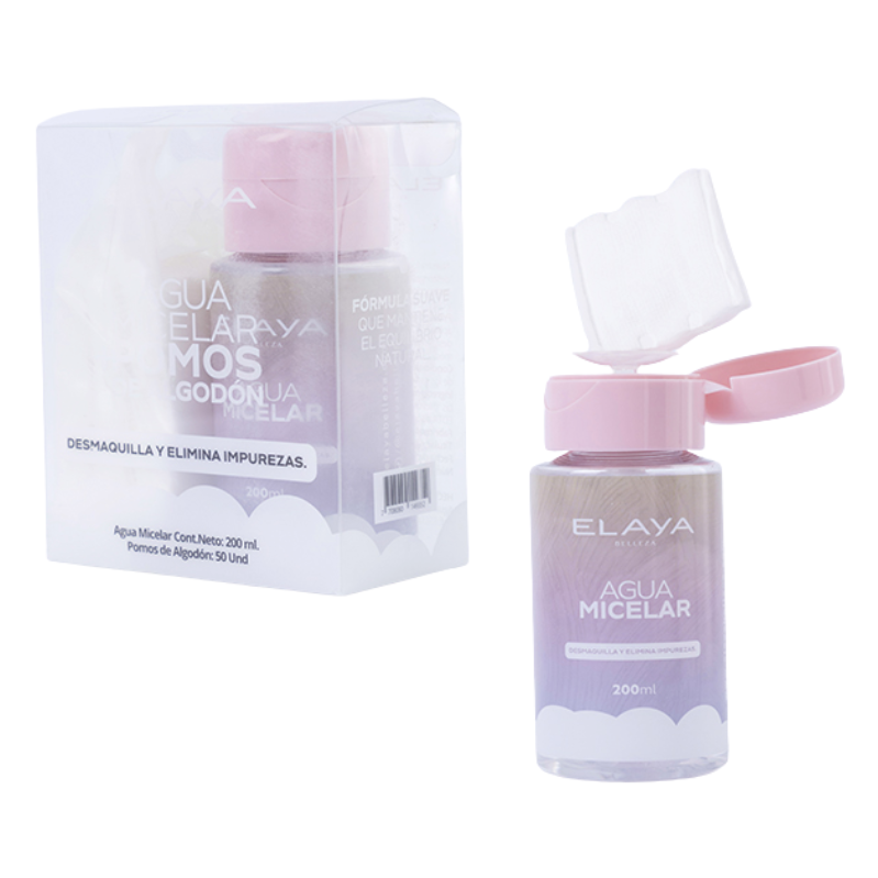 El Agua Micelar Elaya + Pomitos es un producto de limpieza facial suave y eficaz que ayuda a remover maquillaje, impurezas y exceso de grasa sin alterar el equilibrio natural de la piel. Su fórmula micelar actúa como un imán que limpia y refresca, dejando la piel suave, hidratada y con una sensación de frescura. Los pomitos aportan un toque calmante y reconfortante, ideal para el cuidado diario del rostro.