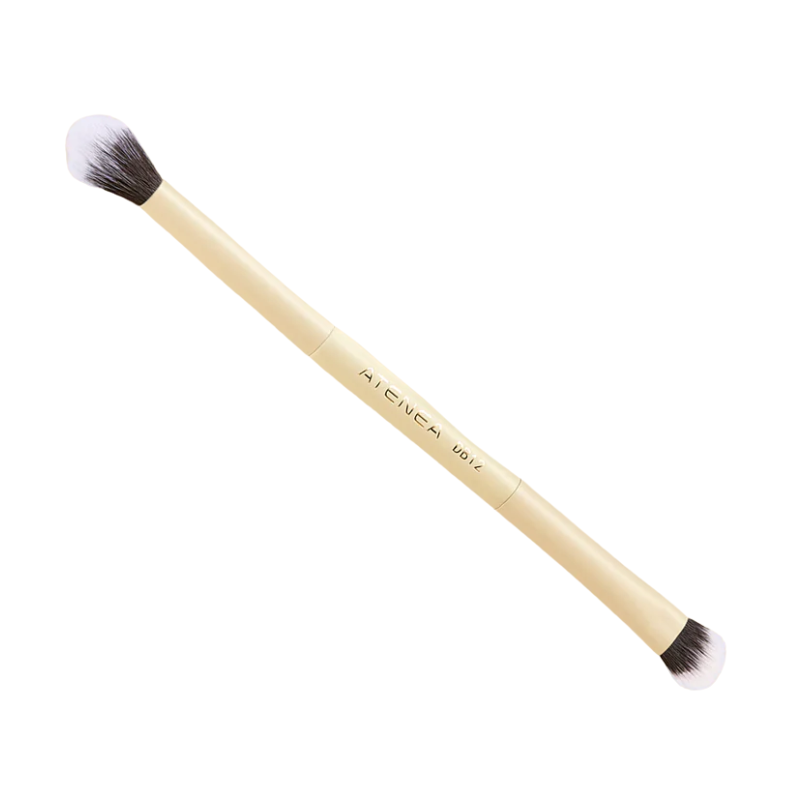 Utiliza el lado difuminador para aplicar y degradar sombras o polvos en párpados o rostro. Usa el lado plano para aplicar bases, correctores o productos cremosos con precisión.