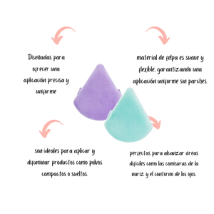 Utiliza el lado grande para aplicar polvos sueltos o compactos y sellar el maquillaje. El lado pequeño es perfecto para correctores líquidos o en crema y zonas específicas. Lava regularmente con agua tibia y jabón neutro y deja secar al aire.