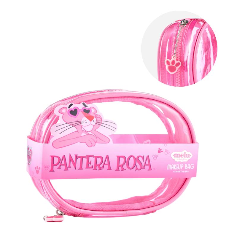 La cosmetiquera coleccionable Pantera Rosa de Melu es un accesorio práctico y llamativo diseñado para almacenar y transportar maquillaje o productos de cuidado personal. Su diseño inspirado en la colección Pantera Rosa la convierte en una pieza atractiva y coleccionable, ideal para organizar tus productos de belleza con estilo.