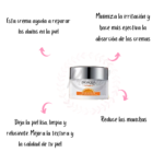 Modo de uso: Aplicar una cantidad adecuada sobre el rostro limpio y seco, distribuyendo con suaves masajes circulares hasta su completa absorción. Usar preferiblemente en la rutina nocturna. En el día se recomienda complementar con protector solar para mejores resultados.