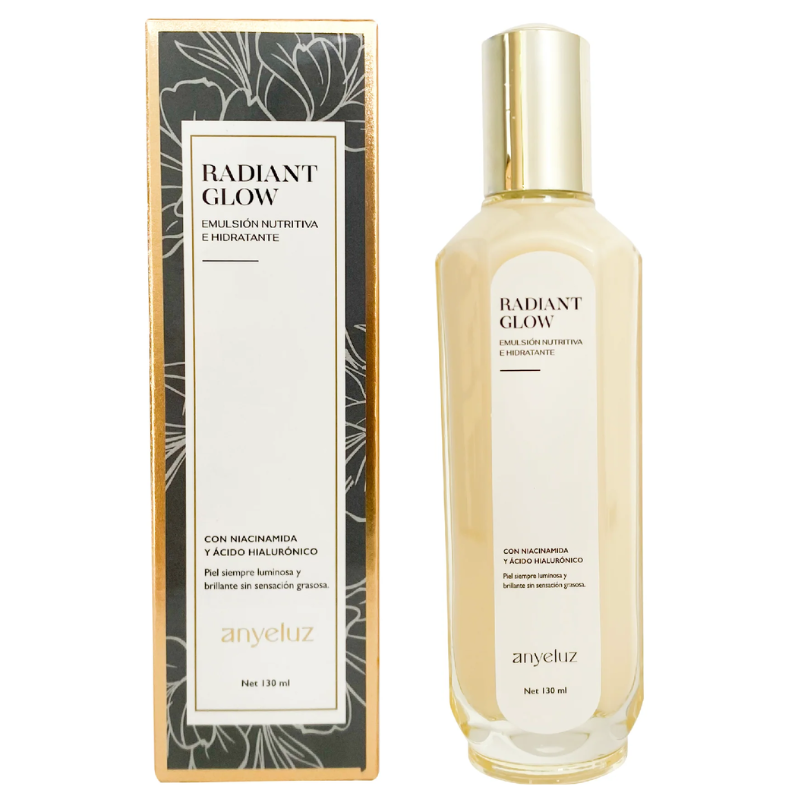 La Emulsión Nutritiva Radiant Glow de Anyeluz es el aliado ideal para darle a tu piel un aspecto saludable, luminoso y lleno de vitalidad. Su fórmula ligera y de rápida absorción combina extractos naturales, vitaminas y ácido hialurónico, brindando nutrición, suavidad y frescura sin dejar sensación grasosa.