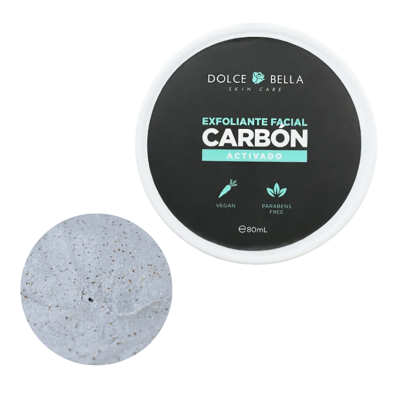 Exfoliante facial antiacné de carbón activado Dolce Bella, formulado para ayudar a remover células muertas, impurezas y exceso de grasa de la piel. Su uso contribuye a una limpieza más profunda, dejando el rostro más suave, fresco y con mejor apariencia. ✨🖤