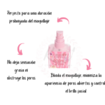Fijador de calidad profesional, hidrata tu piel sin obstruir tus poros ni dejar sensación grasosa, ayuda a que tu maquillaje tenga un acabado aterciopelado y uniforme, además controla la producción de grasa para que durante todo el día tu piel no brille.