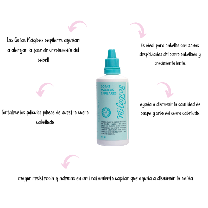 Dale a tu cabello el impulso que necesita con las Gotas Mágicas Capilares Milagros. Su fórmula avanzada con ingredientes naturales estimula el crecimiento del cabello, fortalece la raíz y reduce la caída, dejándolo más largo, fuerte y saludable.