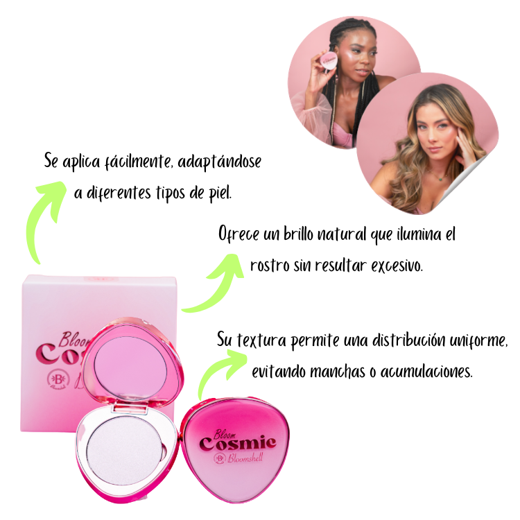 El Iluminador Profesional Bloom Cosmic Bloomshell eleva tu maquillaje al siguiente nivel con su acabado dúo cromático, que refleja la luz desde todos los ángulos para un brillo radiante y sofisticado. Su textura sedosa se funde fácilmente con la piel, brindando un efecto luminoso que resalta tus facciones con un toque celestial. 💖