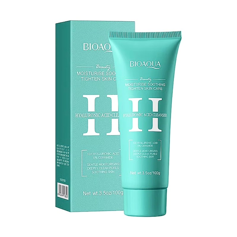 El Jabón Antiedad con Ácido Hialurónico de Bioaqua – Caja Azul es un limpiador facial diseñado para eliminar impurezas, exceso de grasa y residuos de maquillaje mientras ayuda a mantener la hidratación natural de la piel. Su fórmula con ácido hialurónico y agentes humectantes contribuye a dejar la piel suave, fresca y con una apariencia más lisa y luminosa. Es ideal para incluir en la rutina diaria de cuidado facial.