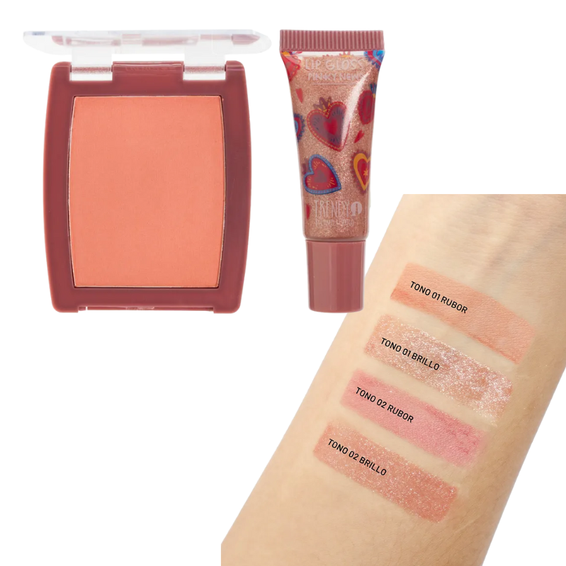 El Kit Rubor y Gloss Pinky Trendy – es un set ideal para lograr un look fresco, natural y femenino. Combina un rubor de textura suave con un gloss labial brillante, perfectos para realzar el rostro y los labios con un toque rosado delicado.