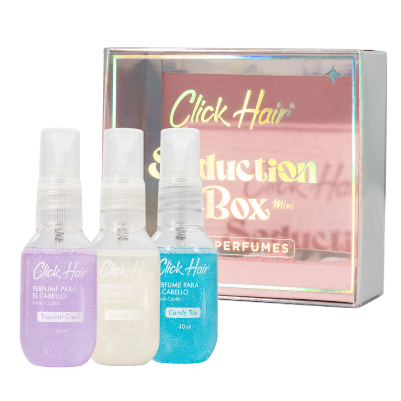 Disfruta de la frescura y practicidad con este kit de 3 mini perfumes Click Hair. Cada frasco es compacto y perfecto para llevar en el bolso, maleta o neceser, ideal para retocar tu aroma en cualquier momento del día. Sus fragancias llegan en tonos y aromas al azar, pensados para cada ocasión.