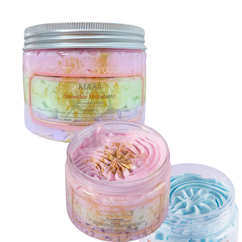 La Mantequilla Corporal Smoothie con destellos Mara – Hidrata profundamente restaurando la piel, mejorando su aspecto más saludable y luminoso.