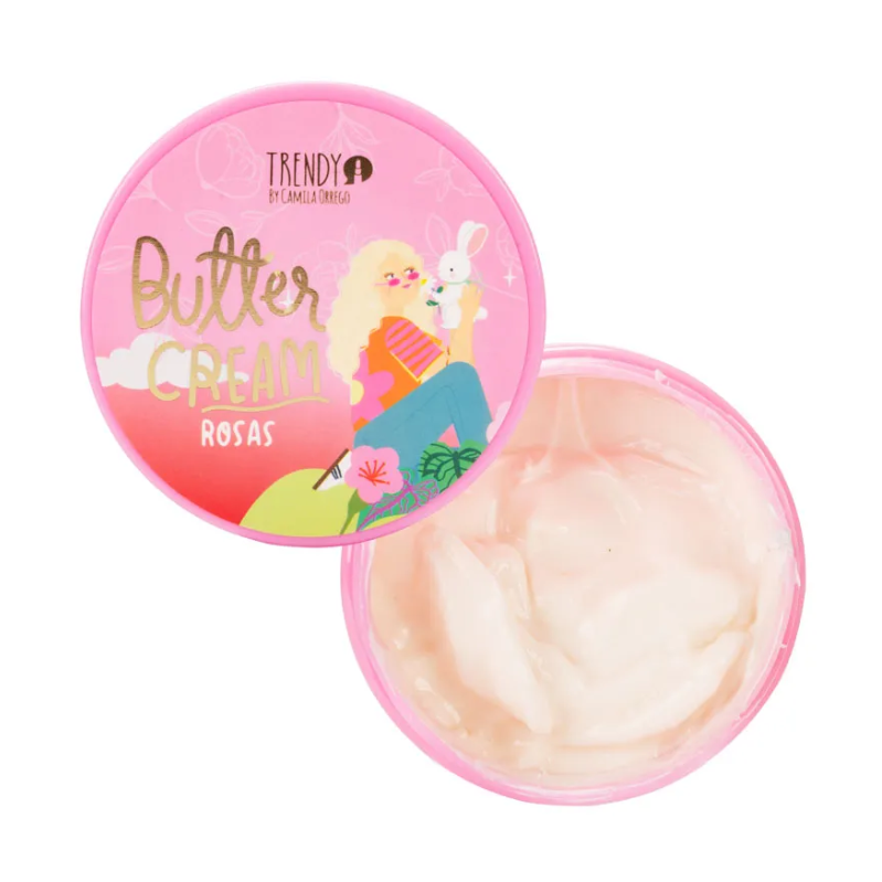 Mantequilla hidratante glitter Rosas Trendy, diseñada para nutrir la piel mientras aporta un sutil brillo con destellos luminosos. Su textura cremosa ayuda a dejar la piel suave, con un acabado radiante y una delicada fragancia a rosas. ✨🌹