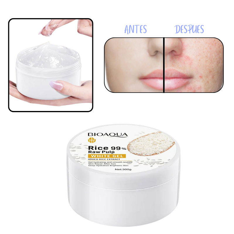 Contiene extracto de arroz con acción aclaradora y antioxidante. Textura en gel ligera y de rápida absorción. Aporta hidratación y suavidad a la piel.