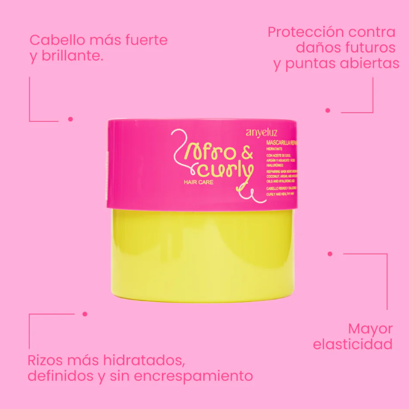 La Mascarilla Hidratante Afro & Curly Anyeluz es el tratamiento intensivo ideal para cabellos rizados, crespos y afro. Su fórmula enriquecida con aceites naturales, mantecas nutritivas y activos humectantes restaura la fibra capilar, aporta suavidad y mejora la definición de los rizos, dejándolos hidratados, flexibles y llenos de vida.