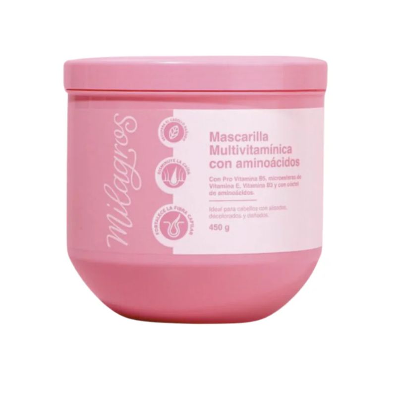 Devuélvele la vida a tu cabello con la Mascarilla Multivitamínica de Milagros, una bomba de nutrientes que hidrata, repara y fortalece profundamente la fibra capilar. Su fórmula rica en vitaminas A, C, E y complejo B revitaliza incluso el cabello más dañado, dejándolo suave, brillante y lleno de vida.