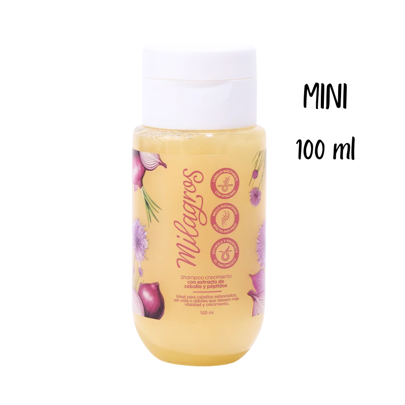 El Mini Shampoo de Cebolla Milagros es un producto capilar formulado para limpiar suavemente el cuero cabelludo mientras ayuda a fortalecer y revitalizar el cabello. Su fórmula enriquecida con extracto de cebolla, vitaminas y activos acondicionadores contribuye a mejorar la apariencia del cabello, aportando brillo, suavidad y sensación de mayor fortaleza. Es ideal para quienes buscan apoyar el crecimiento saludable del cabello y mantenerlo limpio, hidratado y manejable.