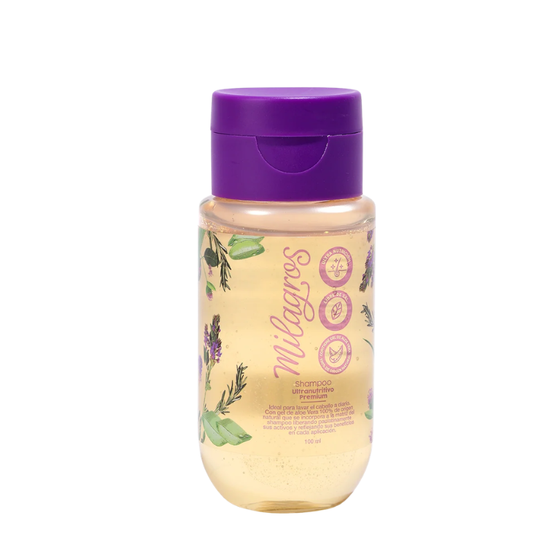 Mini shampoo ultranutritivo Milagros, diseñado para limpiar el cabello mientras ayuda a nutrirlo y mejorar su apariencia. Su fórmula aporta suavidad y brillo, ideal para mantener el cabello cuidado incluso en presentaciones prácticas para llevar. ✨🧴