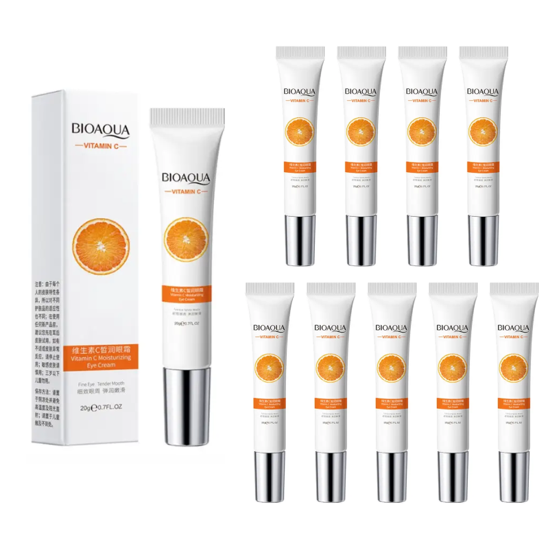 Pack x10 contorno de ojos con vitamina C Bioaqua, diseñado para ayudar a hidratar y mejorar la apariencia del área del contorno ocular. Su fórmula aporta luminosidad y contribuye a una piel más fresca y uniforme. ✨👁️