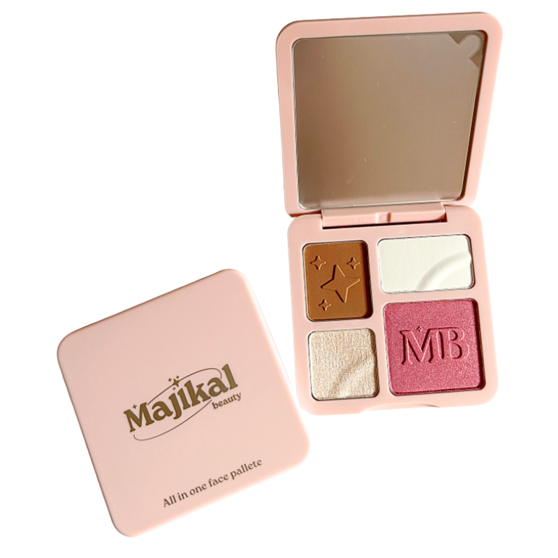 Simplifica tu rutina con la paleta todo en 1 Majikal, que incluye rubor, iluminador y contorno en un solo estuche práctico y profesional. Diseñada para realzar tus facciones y lograr un maquillaje completo con tonos versátiles y pigmentación intensa.