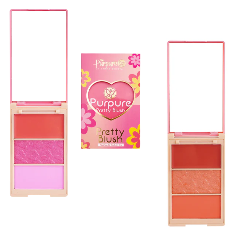 Rubor X3 Pretty Blush Purpure, paleta diseñada para aportar color y frescura al rostro con tres tonos que pueden usarse por separado o combinados. Su textura suave permite difuminar fácilmente, logrando mejillas más definidas y un acabado natural y radiante. ✨🌸