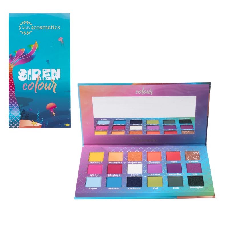 La paleta Siren Colour de Miis Cosmetics es una opción profesional diseñada para crear looks coloridos, intensos y versátiles. Cuenta con 18 tonos vibrantes que incluyen acabados mate y satinados, ideales para maquillaje creativo, artístico o de alto impacto. Su fórmula ofrece excelente pigmentación y facilidad de difuminado, permitiendo trabajar desde looks suaves hasta más elaborados.