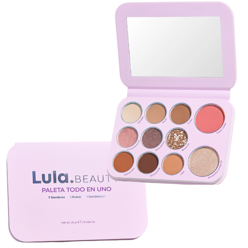 La Paleta de Sombras Todo en 1 Lula es perfecta para crear desde looks naturales hasta maquillajes impactantes. Incluye 9 tonos de sombras con acabados mate, satinados y brillantes, además de rubor e iluminador, todo en un solo empaque práctico y versátil. Ideal para uso diario, viajes o maquilladores profesionales que buscan funcionalidad sin sacrificar estilo.