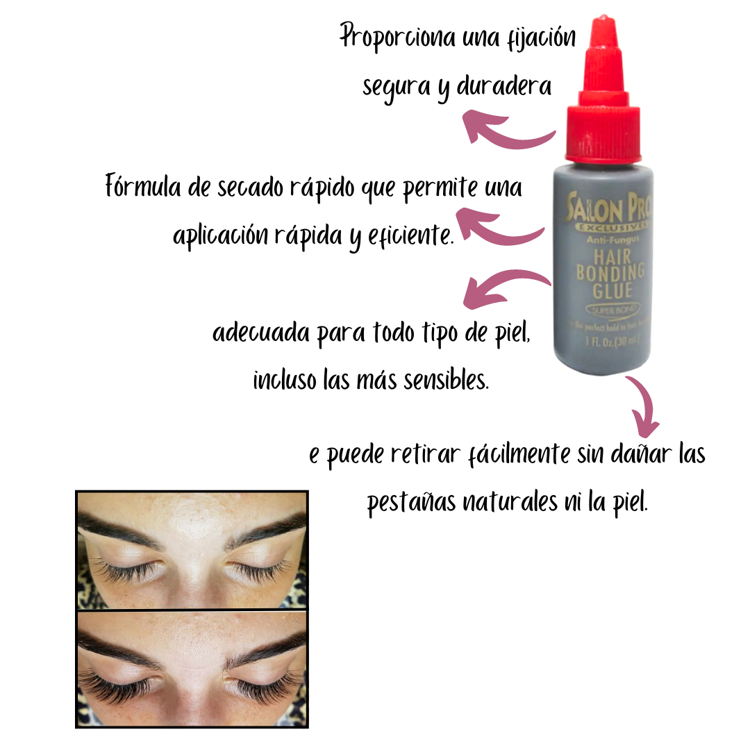 El pegante para pestañas de alta fijación SalonPro es un adhesivo profesional diseñado para garantizar una sujeción firme y duradera en la aplicación de pestañas postizas. Su fórmula está pensada para brindar seguridad y comodidad, ofreciendo un acabado invisible y resistente.
