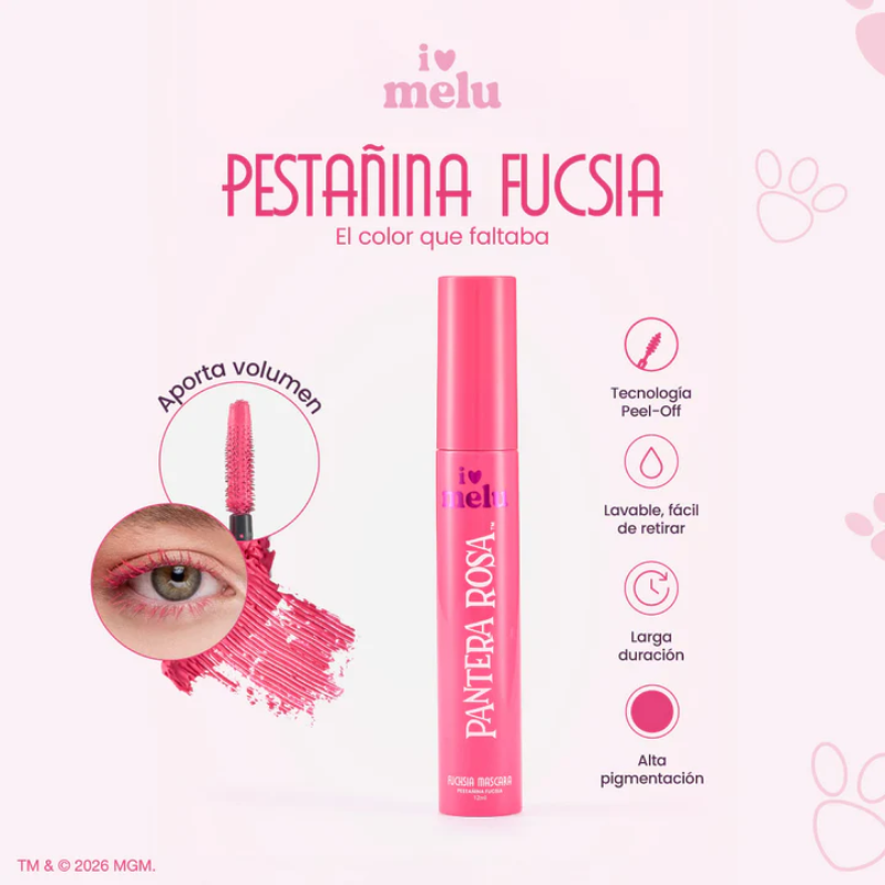 La pestañina fucsia Pantera Rosa de Melu es una máscara de pestañas diseñada para aportar color vibrante, volumen y definición a la mirada. Su fórmula pigmentada permite resaltar las pestañas con un tono fucsia llamativo, ideal para looks creativos, maquillaje artístico o para darle un toque diferente al maquillaje diario. Su cepillo ayuda a cubrir cada pestaña desde la raíz hasta la punta, logrando un acabado uniforme.