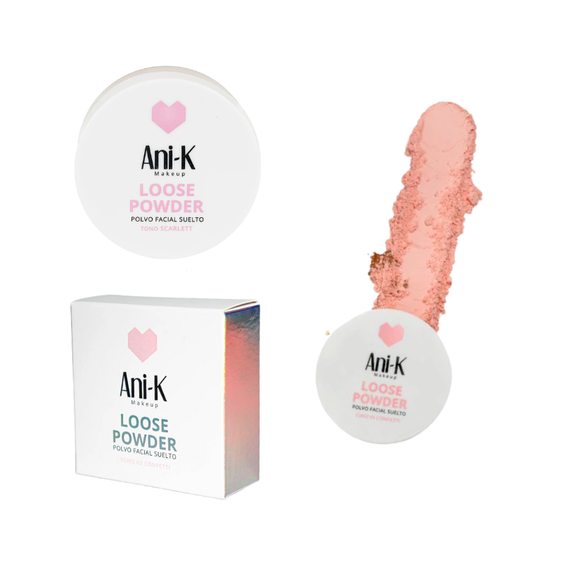 Descubre los Polvos Sueltos Confeti Rosado Ani-K, el toque perfecto para sellar tu maquillaje y aportar un acabado fresco, luminoso y delicadamente rosado. Su textura ultrafina ayuda a controlar el brillo sin resecar, dejando la piel suave, uniforme y con un efecto natural encantador. ✨🌸
