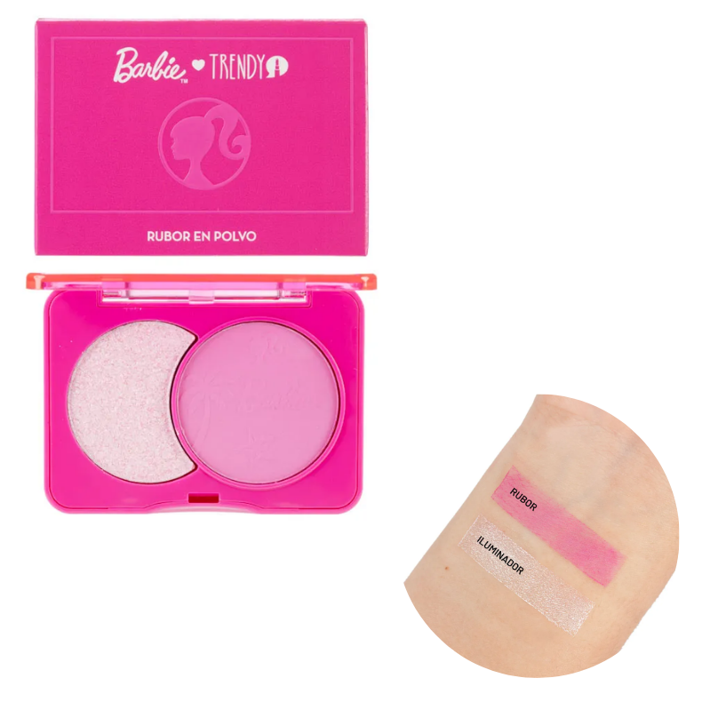 Rubor e iluminador Barbie Trendy, diseñado para aportar color y luminosidad al rostro en un solo producto. Su combinación permite realzar las mejillas y destacar los puntos de luz, logrando un acabado fresco, radiante y femenino. 💖✨