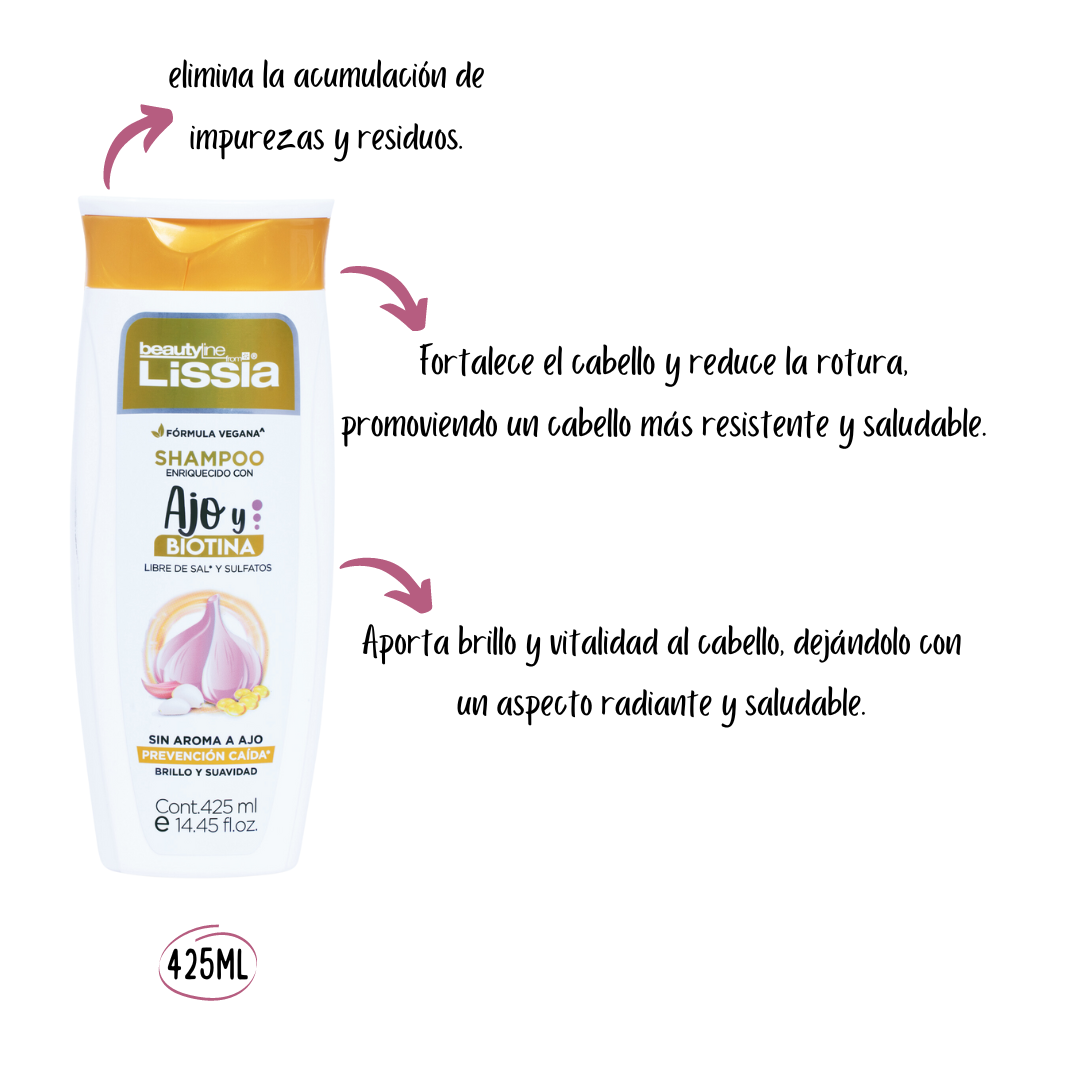 Estimula el crecimiento capilar gracias al extracto de ajo y biotina.