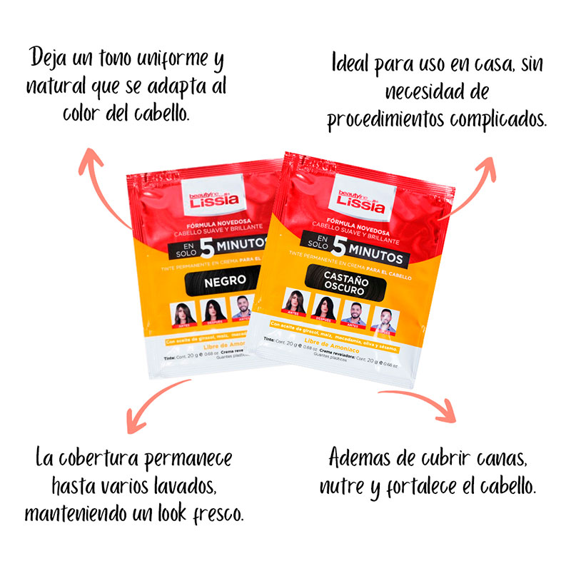 - Cobertura rápida: En solo 5 minutos, cubre eficazmente las canas sin esfuerzo.