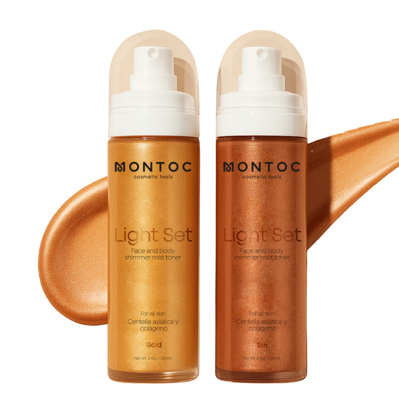 El Shimmer Mist Light Set de Montoc es una bruma corporal con partículas luminosas que deja la piel hidratada y con un resplandor irresistible. Ideal para resaltar brazos, piernas, escote o rostro con un acabado brillante pero natural. Su fragancia sutil y fórmula ligera se absorben fácilmente sin dejar sensación pegajosa.