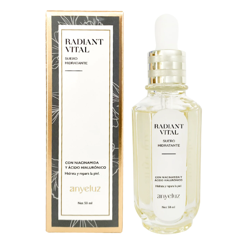 El Suero Hidratante Radiant Vital de Anyeluz es un tratamiento intensivo que aporta hidratación profunda y duradera, ayudando a restaurar la barrera natural de la piel y a mantenerla suave, luminosa y saludable. Su fórmula ligera se absorbe rápidamente sin dejar sensación grasosa, ideal para usar en la rutina diaria.