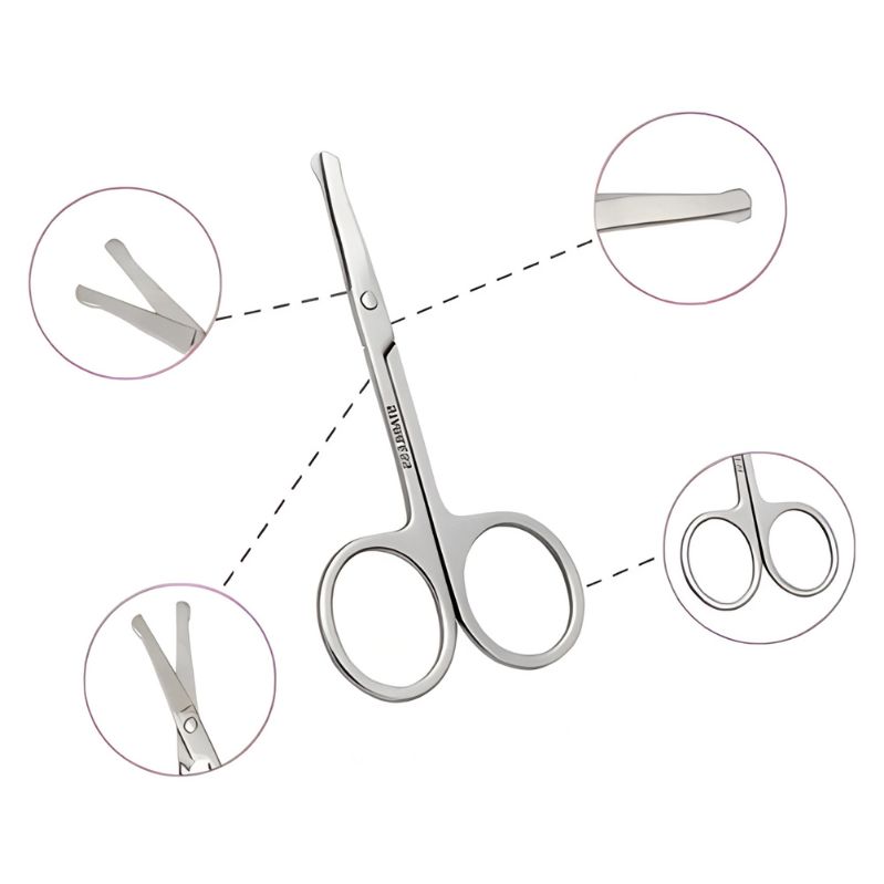 La Tijera Mini Cejas y Nariz Punta Redonda es una tijera compacta con punta redonda, ideal para recortar cejas y vello nasal con precisión.