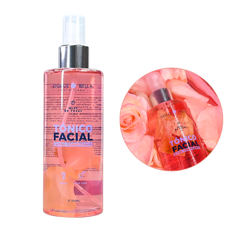 El Tónico de Rosas Dolce Bella refresca, hidrata y revitaliza la piel, ayudando a equilibrar su pH después de la limpieza. Su fórmula ligera aporta sensación de frescura inmediata mientras prepara el rostro para recibir los siguientes pasos de la rutina facial. Ideal para todo tipo de piel, especialmente piel sensible o con tendencia a la deshidratación.