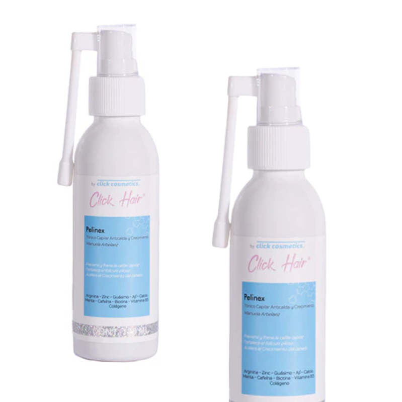 Recupera la fuerza de tu cabello con el Tónico Pelinex Anticaída Click Hair, un tratamiento capilar especializado que estimula el crecimiento, fortalece el folículo y reduce visiblemente la caída. Su fórmula activa penetra directamente en el cuero cabelludo, revitalizando cada hebra desde la raíz.